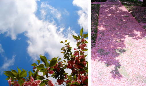 That paragraph just got sappy. Moms and dads are sappy, tho. They can’t help it. I used my hubby’s camera to capture the beauty that is the pink snow in our neighborhood. Soon the pink cotton candy tree in front of our house will lose all its blooms and sink to a lowly green once again, until fall when it will drop its leaves, then bare in the winter. Next spring is a long time away.