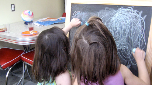 Work is still happening, which rules. I now have enough office costumes to wear so that nobody has to see me in the same thing twice in a two or three day period. The girls are now always staying in preschool from 9:30 till 3, three days/week. Beenie even naps there — she NEVER naps at home! The thing is, though, she doesn’t really need to nap. It’s just the culture of class that everyone passes out, so she figures she isn’t missing anything, and joins in. Makes bedtime challenging if I can’t get her outside running around somewhere, but I’m glad she can shut down for an hour or so during the day without too much hassle. Speaking of bedtime… 10 p.m. is an unacceptable bedtime for the little peeps, which is what it has become since daylight savings time kicked in. Need to trick their bodies into thinking it’s an hour later than it really is. Hopefully things will flow into a normal schedule by next week. Will try to wake them up early this morning to see if that helps.